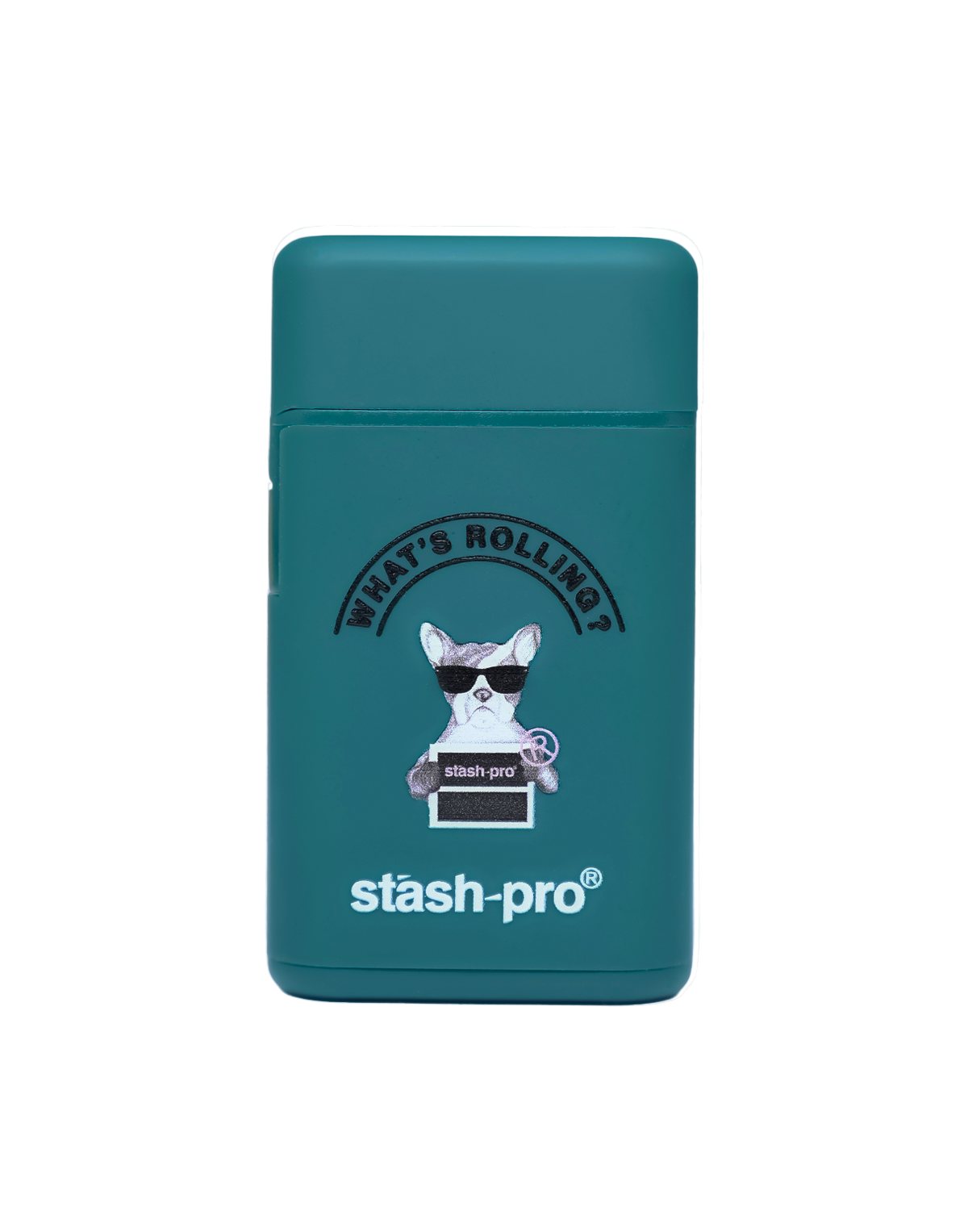 Teal matte finish with bulldog “What’s Rolling?” print